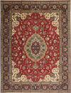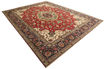 This carpet is knotted in workshops in the city of Tabriz in northwestern Persia. It is a sturdy durable carpet with a short rough pile. The patterns can consist of a centrally placed medallion surrounded by arabesques, weeping willows and cypresses. Another popular motif is the four seasons, describing the Persian farmers life during spring, summer, autumn and winter.