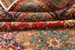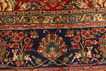 This carpet is knotted in workshops in the city of Tabriz in northwestern Persia. It is a sturdy durable carpet with a short rough pile. The patterns can consist of a centrally placed medallion surrounded by arabesques, weeping willows and cypresses. Another popular motif is the four seasons, describing the Persian farmers life during spring, summer, autumn and winter.