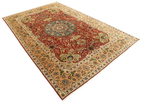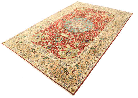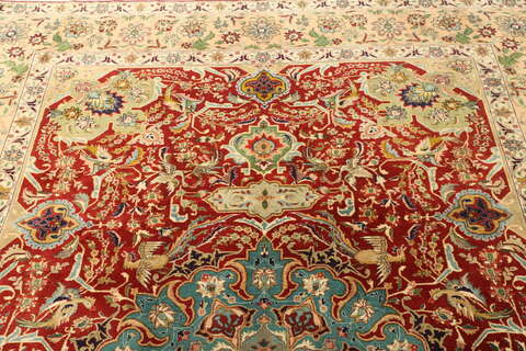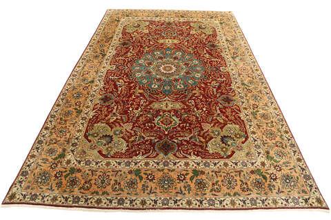 Elaborate weaving technique with specialized artisans tying knots to form rows of pile either by cutting each individual knot or an entire row of knots. Hand-knotting takes time and also allows for intricate patterns.