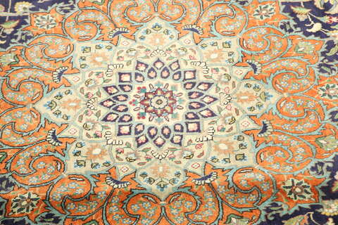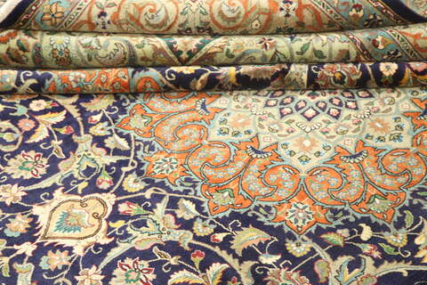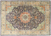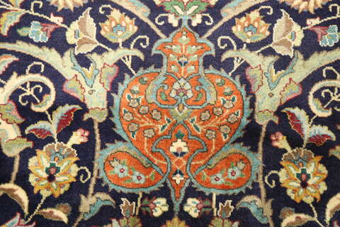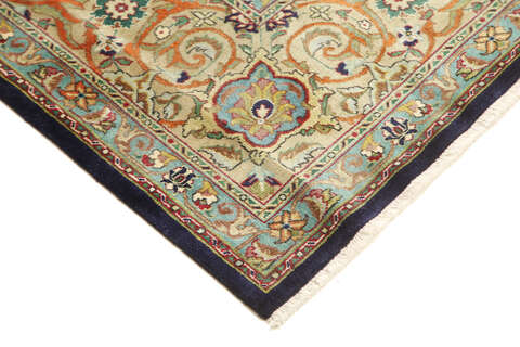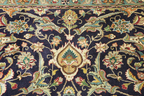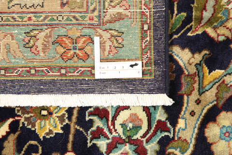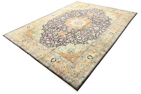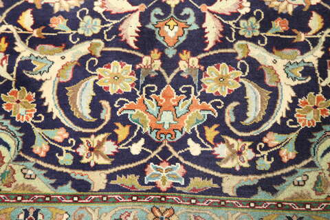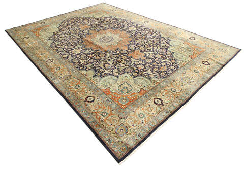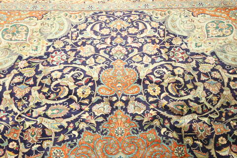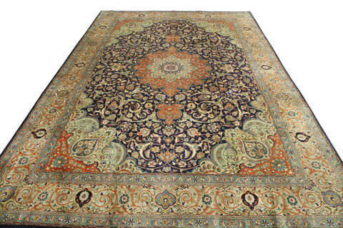 This carpet is knotted in workshops in the city of Tabriz in northwestern Persia. It is a sturdy durable carpet with a short rough pile. The patterns can consist of a centrally placed medallion surrounded by arabesques, weeping willows and cypresses. Another popular motif is the four seasons, describing the Persian farmers life during spring, summer, autumn and winter.