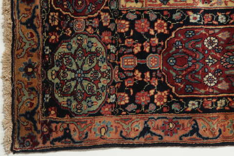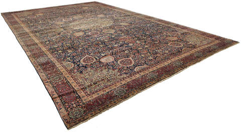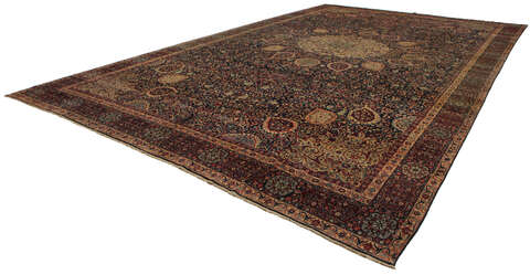 This carpet is knotted in workshops in the city of Tabriz in northwestern Persia. It is a sturdy durable carpet with a short rough pile. The patterns can consist of a centrally placed medallion surrounded by arabesques, weeping willows and cypresses. Another popular motif is the four seasons, describing the Persian farmers life during spring, summer, autumn and winter.