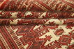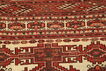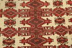 These carpets are hand-knotted, mainly in Turkmenistan, but also in neighbouring areas. They are made from high-quality wool, and there may be silk in the pile. The patterns are repetative with Göl and often wide borders on the shorter sides, but not on the long-sides. Red, the whole scale from violet to brown, are the dominating colour. The carpet is an excellent piece of craftmanship.