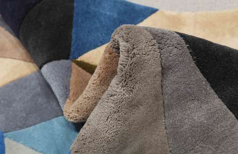 Handtufted carpets are made by hand using high quality raw materials, but rather than having knots that need to be tied, a special ”tufting gun” is used to push loops of yarn through a scrim (pre-woven backing).