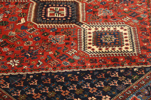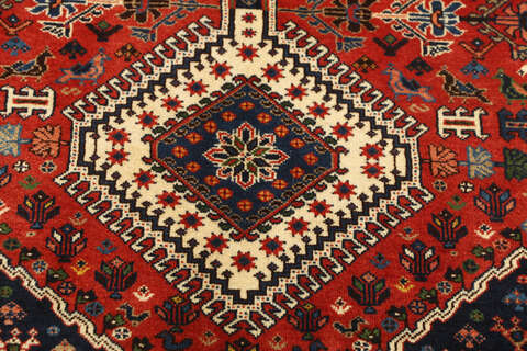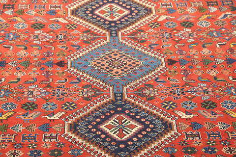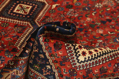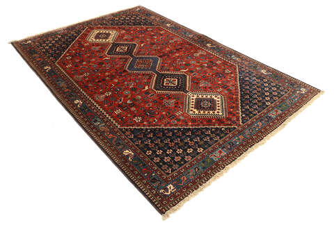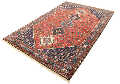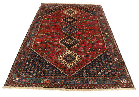 This carpet is knotted by the nomadic Yalameh-tribe that wanders in the Fars province in southern Persia. The carpet is known for its distinctive richness in the pattern and strong deep colours. Sometimes in the pattern, diamond shaped medallions occur in a straight line. The carpet is considered to be of very high quality.