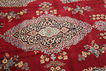 This carpet is knotted in the city of Yazd in southern Persia. The patterns are often inspired by Keshan carpets. The carpet has a very detailed pattern, often with a medallion in the center and a high pile. In the changing colour scale there is often a characteristic violet-red colour. The carpet is beautiful and worth its price.